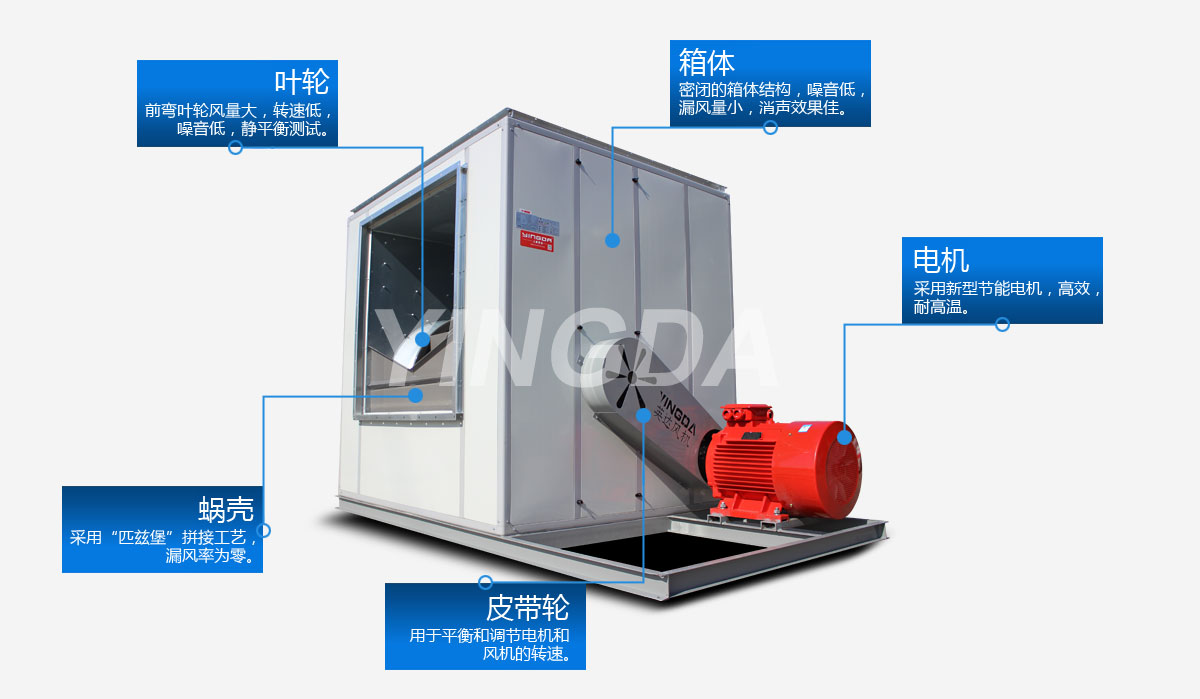 英達風(fēng)機蝸殼采用流線型雙進風(fēng)結(jié)構(gòu),“匹茲堡”拼接工藝,漏風(fēng)率為零;雙側(cè)板一次成型,精度高,減小裝配后尺寸誤差;葉片一次沖壓 成型,專門夾具確保葉片安裝精確定位。