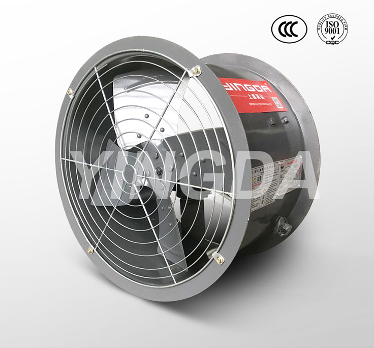 1.2.按直徑分為250~1100mm共14種規(guī)格,每一規(guī)格風(fēng)機(jī)葉片數(shù)都為4片,參數(shù)范圍廣,風(fēng)量800~65000 m3/h,風(fēng)壓40~470Pa。風(fēng)機(jī)可壁式安裝也可管道式安裝。
